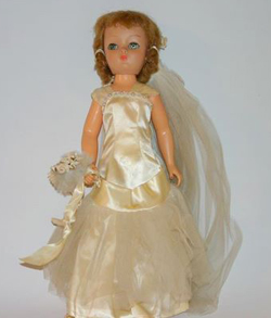 The doll is in fair condition. She has no cracks or breaks. She has tiny white scratches near one ear and her hair needs regluing.